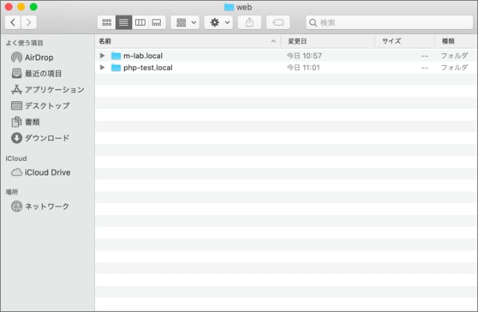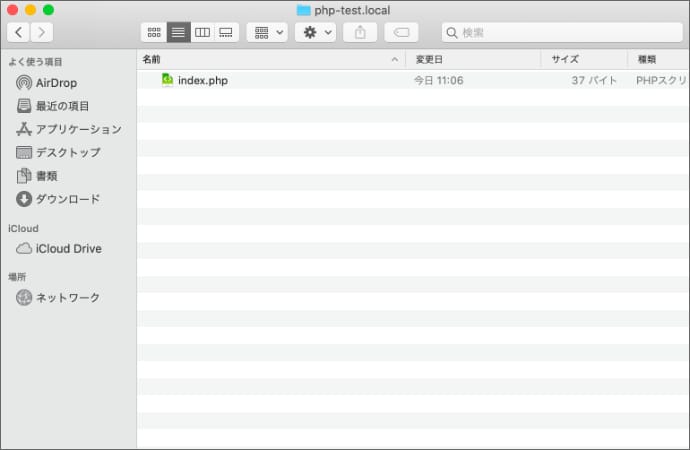新しく作るphp-test.localにはとりあえず何かしら表示できるindex.phpだけ配置しておきます。