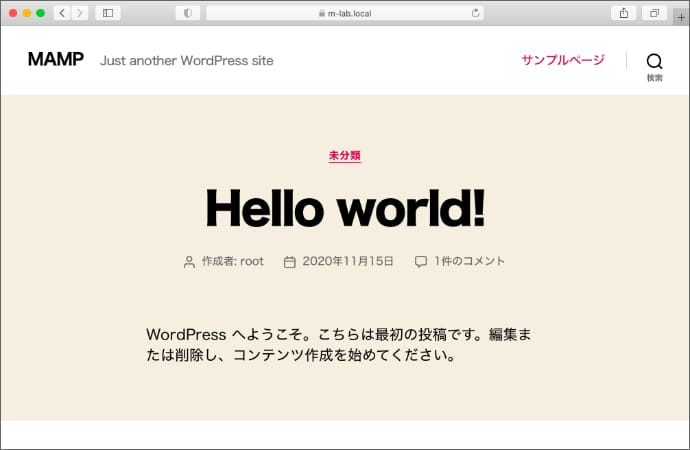 現在のMAMP環境は1サイトで、HTTPS化したWordPressをインストール済みの状態です。