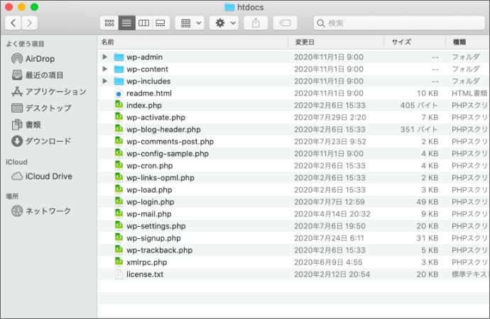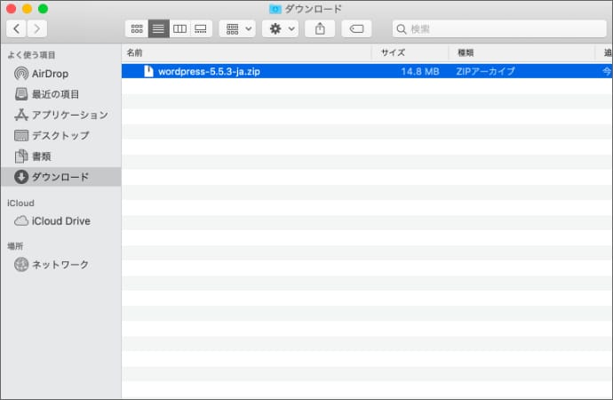 ダウンロードしたwordpress-5.5.3-ja.zipを解凍します。