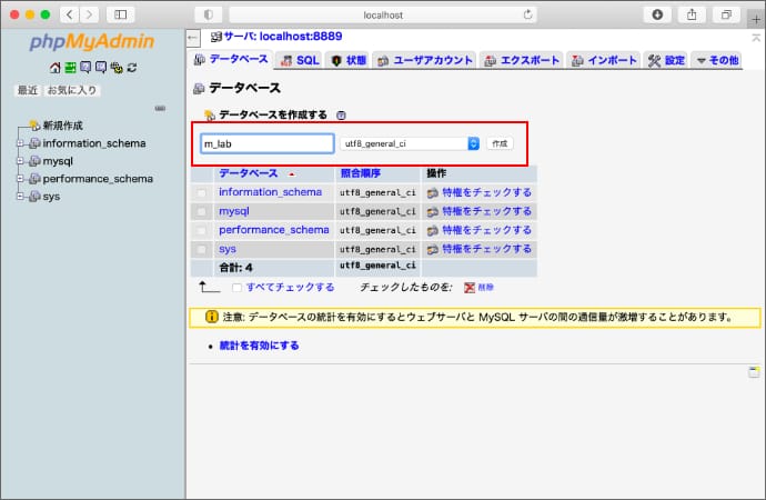 WordPressをインストールするためには、データベースを作成する必要があります。