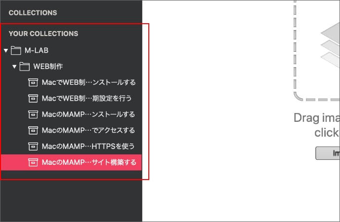 左側にあるYOUR COLLECTIONの配下にフォルダとコレクションを好きな階層で追加していくことができます。