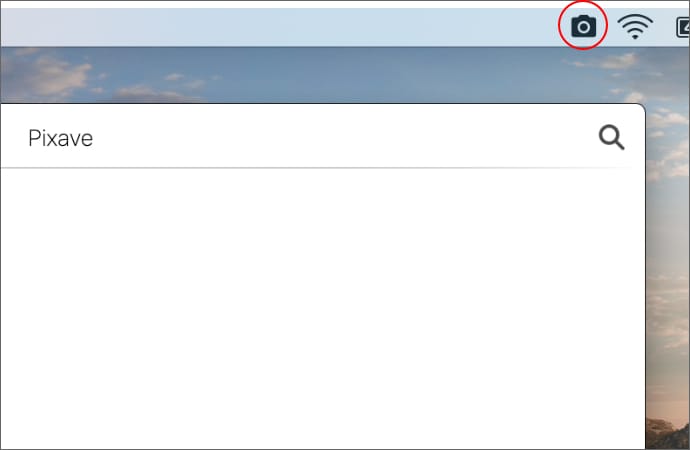 使い方ですが、Pixaveを起動していると、画面右上のメニューバーにカメラのアイコンが表示されます。
