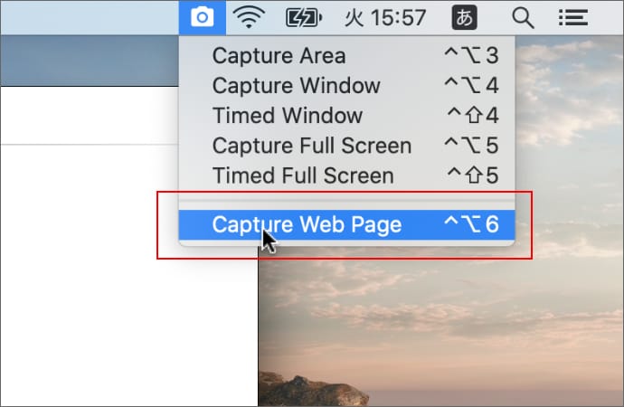 カメラのアイコンをクリックしてCapture Web Pageをクリックします。